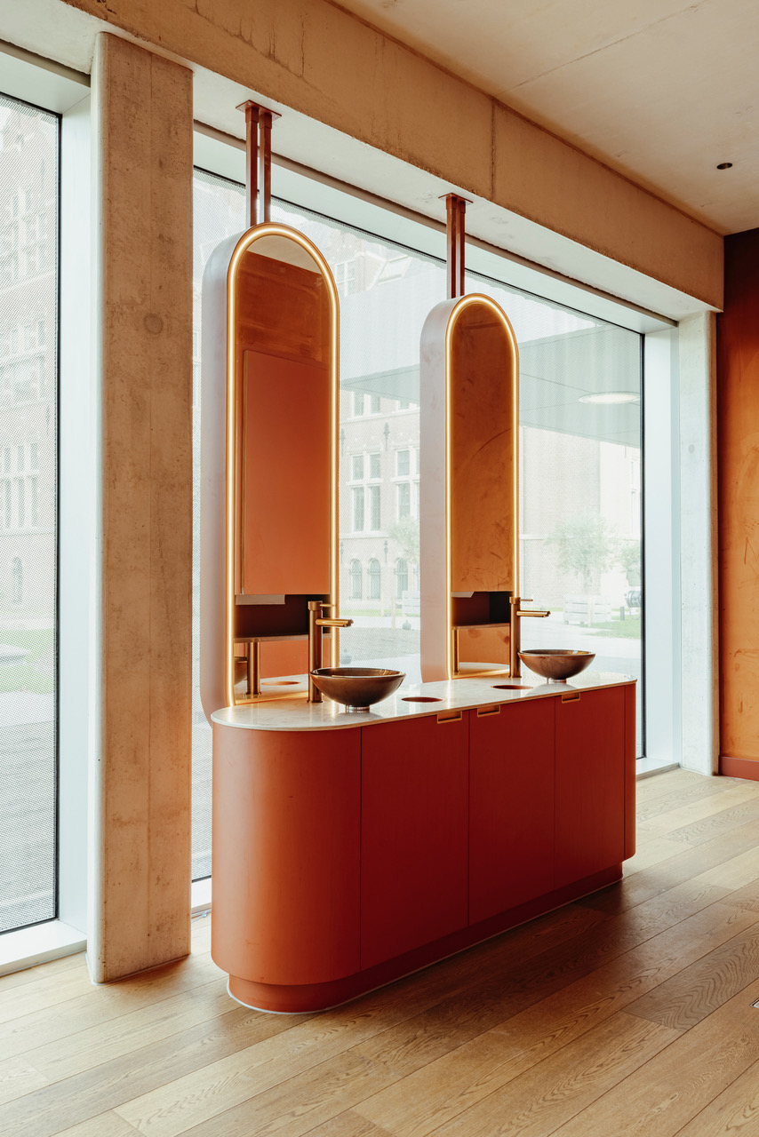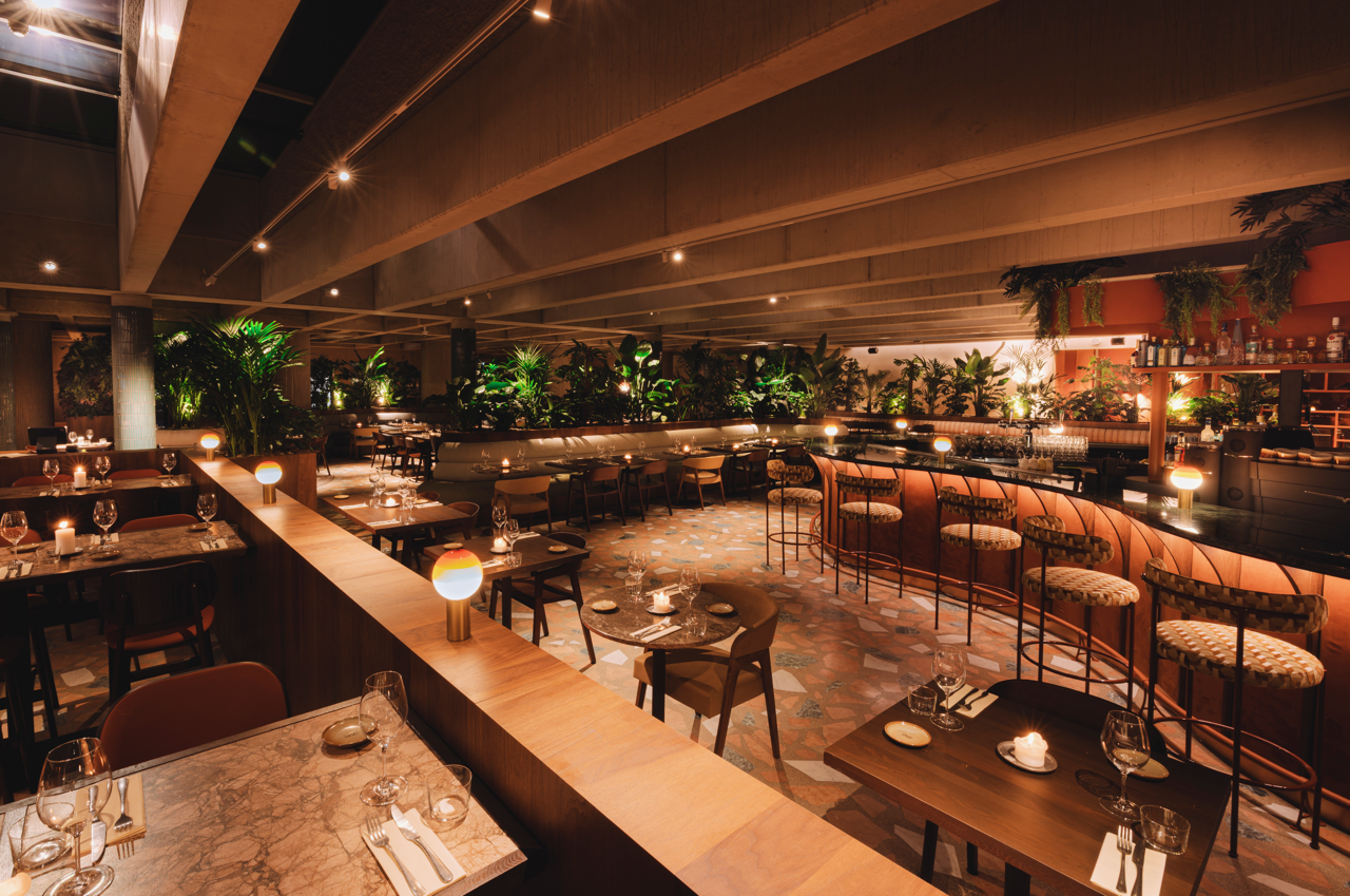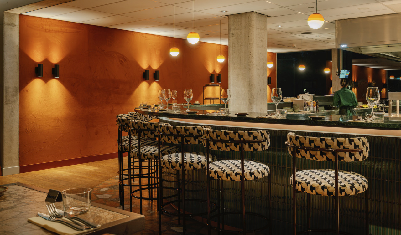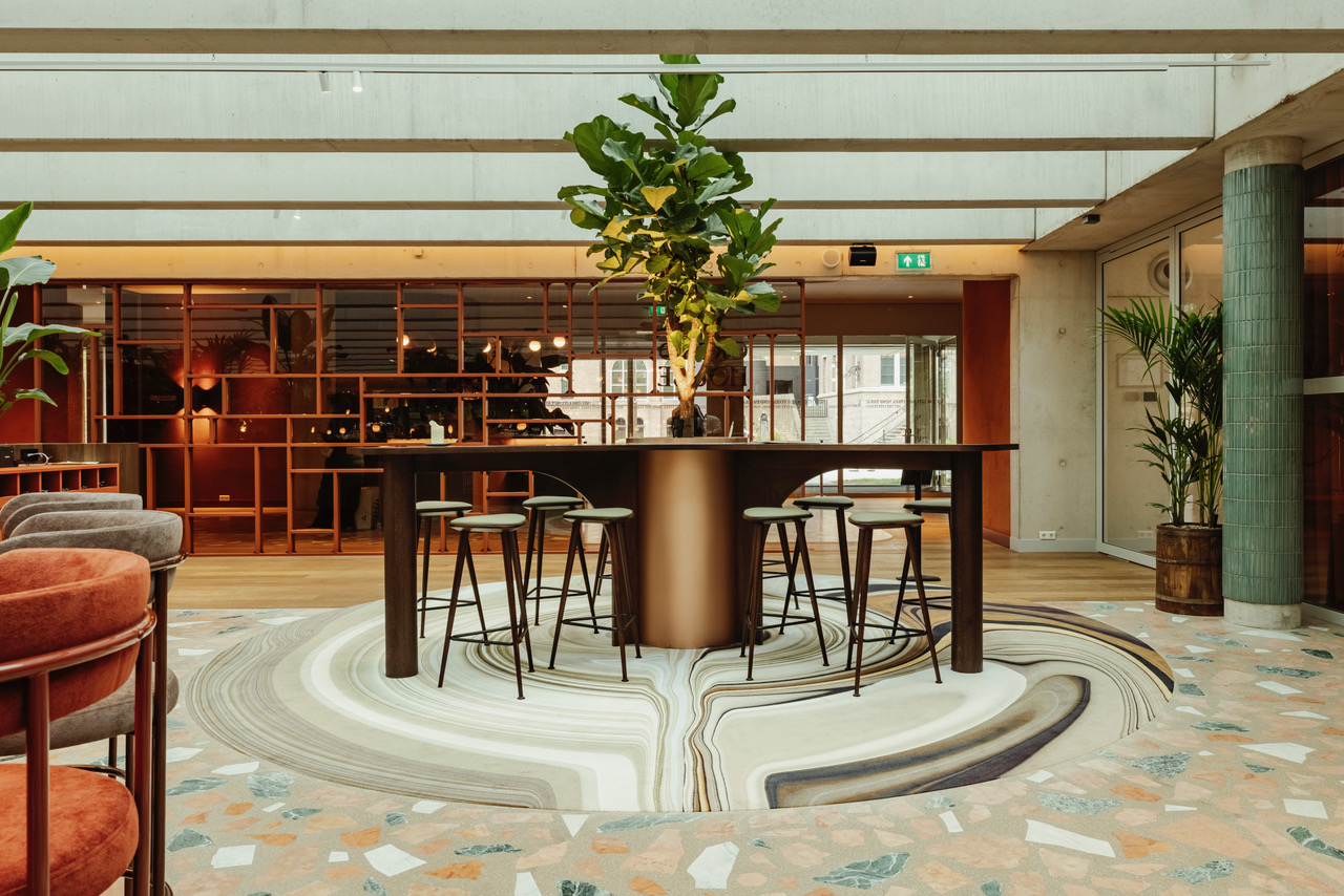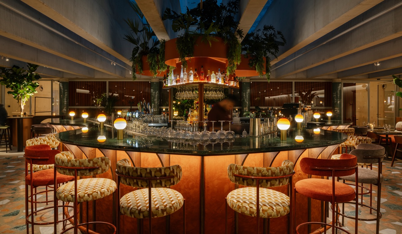 In het midden van dit alles bevindt zich het kloppende hart van de zaak: de Orchid bar. Deze orchidee vormige bar vormt het hart van de zaak, het interieur en het concept.