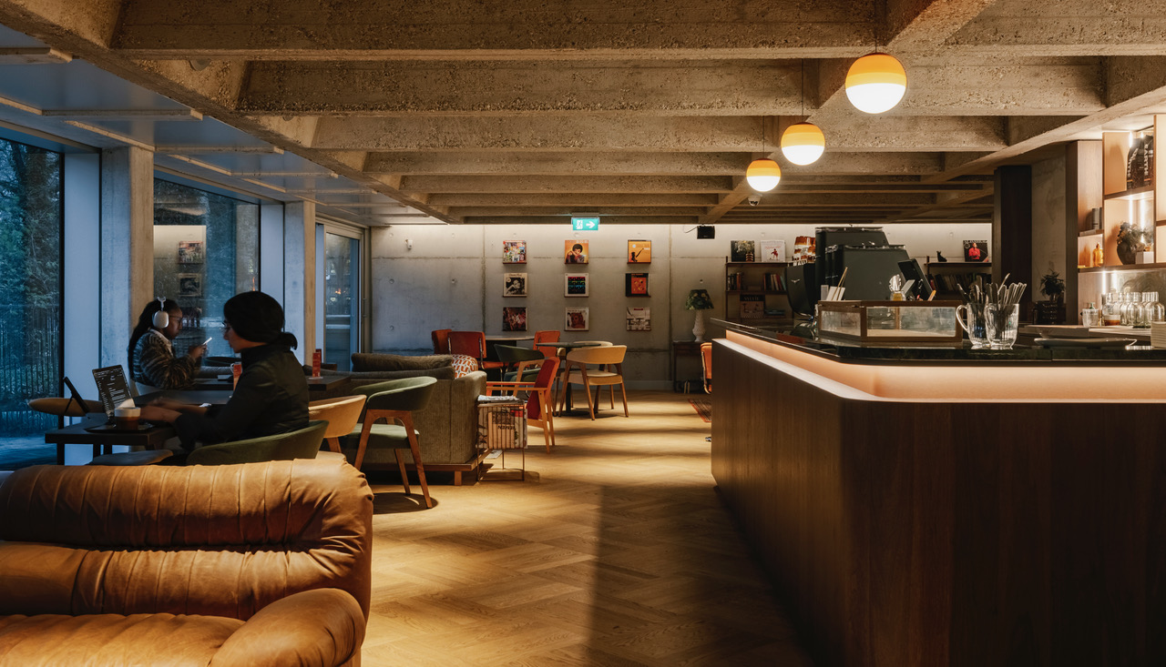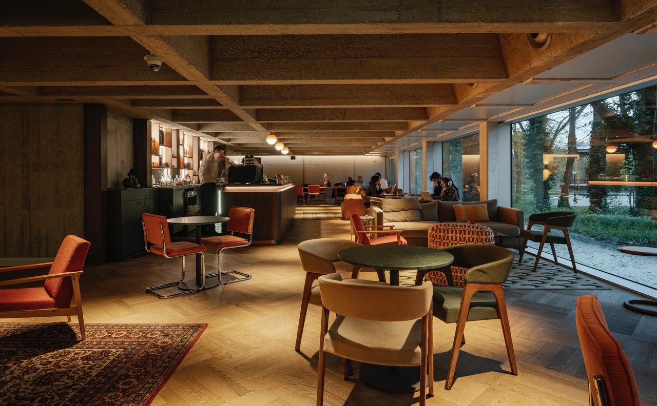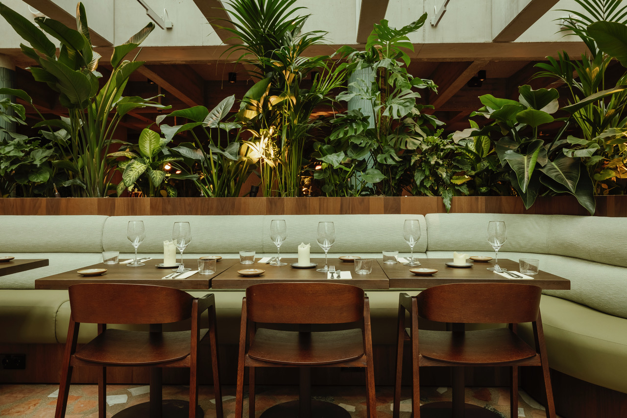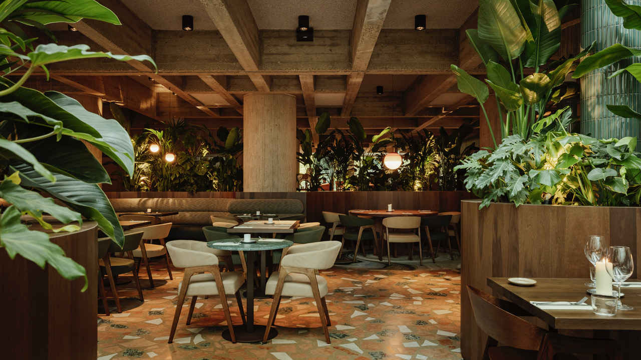 Het Orchid House bevindt zich op de begane grond van het (tropen) hotel midden in het park onder een enorm glazen dak, bij de liften het café en aan de linnaeusstraat de tuinkamer met terras. Achter het grote kamerscherm is het restaurant verstopt in de oude patio van de brutalistische structuur van het originele jaren 70 hotel. De grote ruimte van het restaurant is door middel van banken en planten ingedeeld om de bezoeker welkom te heten en ieder zijn eigen hoekje te geven. Door elke plek te omringen met groen geïntegreerd in het interieur is een stukje van het Oosterpark naar binnen gehaald: je waant je in een tropisch Oosterpark. Het meubilair is met zorg uitgekozen op comfort en in verlengde van de jaren 70 identiteit van het bestaande gebouw.