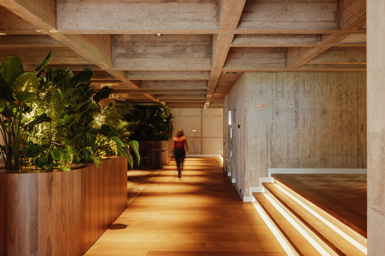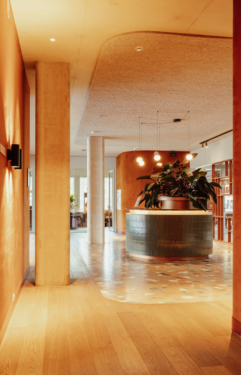 Orchid House is opgedeeld in Dining, Social en Café. Tussen deze functies leiden de vloeren de weg. De houten vloeren markeren de looproutes, terwijl het terrazzo de basis vormt waar gedineerd, gedanst en koffie gedronken wordt. Deze terrazzo vloer is gemaakt uit afgekeurde marmeren platen, gebroken of waar net een hoekje uit was. Deze platen zijn verder in stukken gebroken en zorgvuldig steen voor steen in elkaar gepuzzeld om de mozaïekvloer te vormen. De kleuren van de vloer komen terug in de stoffering, bekleding en behang. Deze zachte materialen vormen de balans met de betonnen structuur.